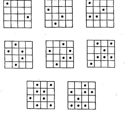 Испытуемому на короткое время (1с) предъявляются по одной из восьми карточек с изображением от двух до девяти точек. Каждая карточка показывается два раза. После этого испытуемый отмечает на аналогичном пустом бланке расположение точек. На воспроизведение карточки с 2-5 точками дается 10 секунд, 6-7 точками — 15 секунд, 8-9 точками — 20 секунд.